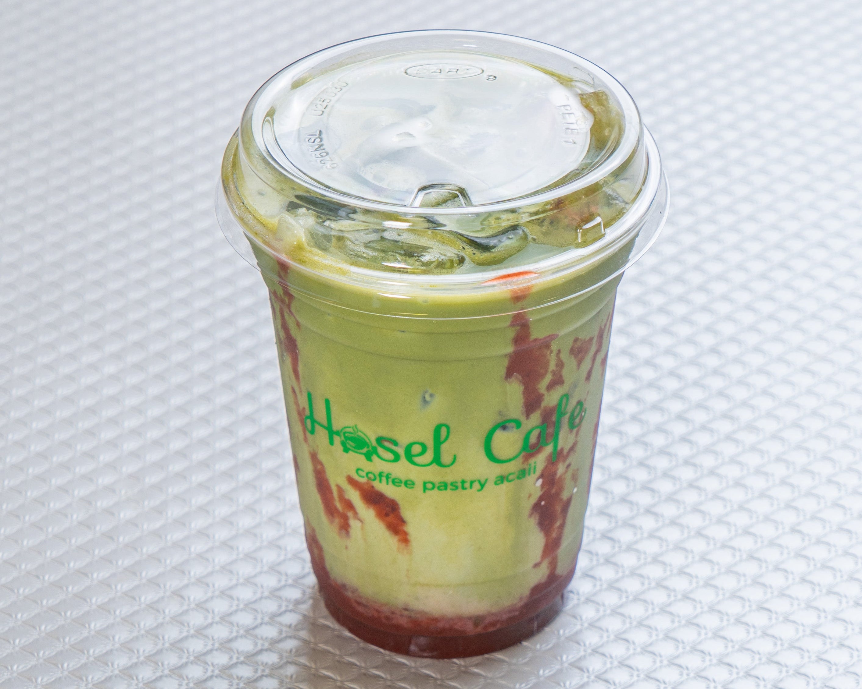Refreshing iced latte 16oz with sweet strawberries, earthy matcha, and creamy milk.